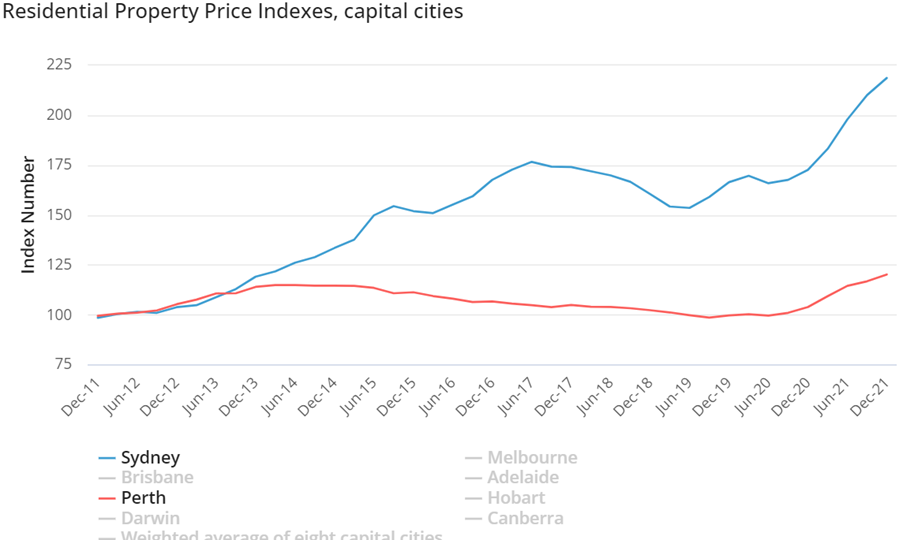 Ah Perth, what to say about Perth? After a long, long slowdown after the mining boom crash, house prices did not move for virtually 13 years. In fact, during the last mining boom there was a point when Perth was the most expensive city in Australia, briefly overtaking Sydney!
