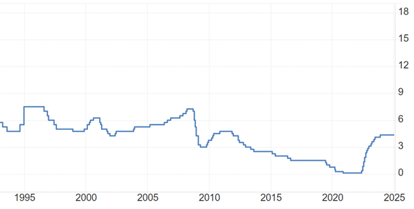 - At the end of 2024, interest rates are 4.35%, roughly equal to current rental yields.