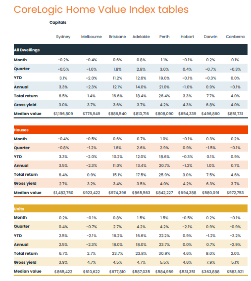Perth has been the standout performer across all dwellings. Here below are annual increases and rental yields for all cities, over the past month, quarter and year, broken down between all dwellings combined,houses and apartments released by Core Logic on 2 December 2024: