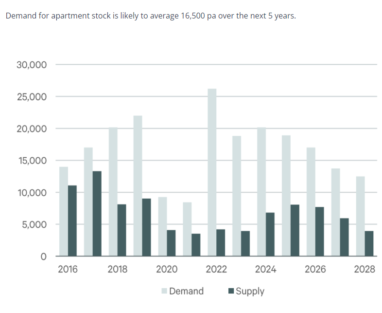 Demand for apartment stock is likely to average 16,500 pa over the next 5 years.